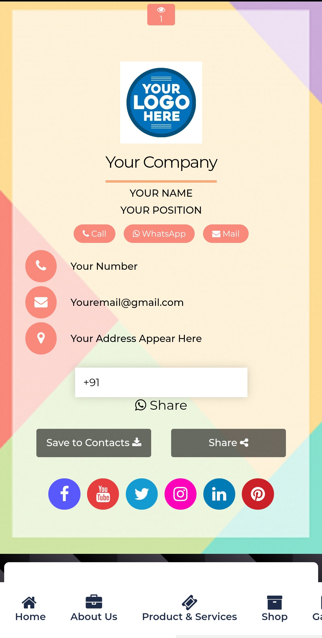 Design your digital visiting card in 2 minutes - it's easy, elegant and free. This Online Vcard is always in your pocket, never tears and never runs out. Your Digital Visiting Card can be easily updated with our user-friendly dashboard, so you won't need to re-print a business card again.